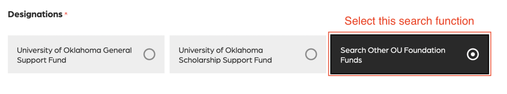 Step 4 – Click “search other OU Foundation Funds”