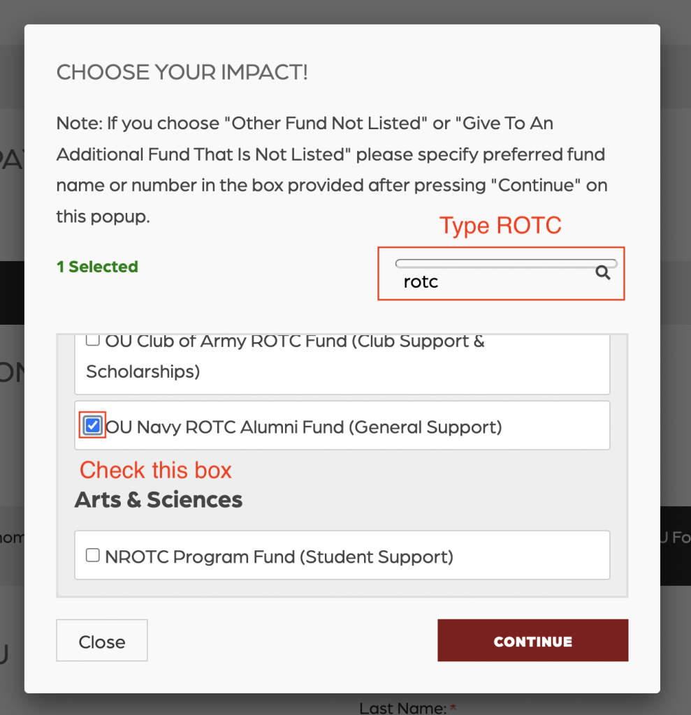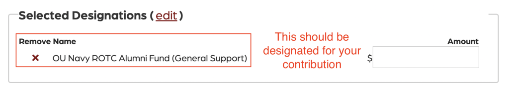 If you’re interested in donating the OU NROTC ALUMNI FUND, please follow the steps below.